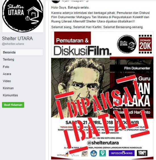 Rudi Haryanto dipaksa batal. Shelter Utara, komunitas tuan rumah, mengaku